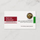 Overleaf, a similar design theme is used. The red sponge dab tab at the left has your prestigious name with the business name underneath. To the right is the gold logo alongside the contact details and a slogan caption.