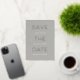 Modern save the date design in chic grey-beige features sans serif and italic lettering in crisp white, with your names, wedding date and location interspersed with "save the date" in gold. Personalise with your invitation info and/or wedding website on the back. An elegant save the date design for modern couples with a minimalist aesthetic.