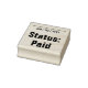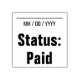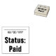 This rubber stamp design features the message "Status: Paid" and a line where a payment date can be written. It could be used to mark an invoice or bill as having been paid.