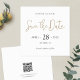 This simply chic square wedding save the date card features 'Save the Date' conveyed with a lively modern script. This save the date element of the design is in an elegant gold tone called California Gold and its colour can't be altered. The other text is black by default, and you might choose to change some of this text to another colour, size or font to suit your style. And you might choose to include your last names as well as your first names when you edit for your own details, or use just your first names as we have in the sample text. We've set the default background on both sides as transparent to let the colour of the paper simply serve as the base tone. But if you prefer a specific colour for the background of one or both sides, you can easily pick one with the editing tools. And you can change or delete text fields. And on the back of the card, Instead of entering your own wedding website address, you might use that space for a different message. And we've included a QR code on the back above the text. If you have a wedding website of your own and choose to keep this QR code, please be sure to remember to replace the sample website embedded in the QR code with your own website url. Please note that if you keep the QR code part of the design as well as the text below it that includes space for the address of your website, you will need to edit the sample website info twice, not just once. You'll need to change the website info that is plainly visible below the QR code, and also the website address that is embedded in the QR code itself, that will lead those who scan it to your own website. And we highly recommend that before you finalise your order, you actually scan the QR code that you have edited to confirm that it leads to your own website. Or you might prefer to simply delete the QR code and not use it, for a simpler look. Make this simple modern wedding save the date card uniquely yours with the intuitive design tools and your inspiration. And please check our shop for other modern minimalist save the dates in various formats and designs!