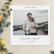 This simple, stylish modern photo wedding thank you flat card template features your names highlighted in an elegant medium dark shade of green in a lively handwriting script beneath your photo. The date text below that is a grey tone. The default shape is a standard sharp corner style, but this design also looks great with rounded corners, so try both looks in editing mode to see which grabs you! You might choose to change the font, punctuation or colour used for various text elements of this design on the front and/or back. For example, you might choose to give a different colour to your name text, or change the LOVE AND THANKS text above the photo to THANK YOU or something else. We've chosen black for the LOVE AND THANKS text, but you can change this to any colour you'd like. The background on the front is set as transparent to let the colour of the paper simply serve as the base tone, but you can change this look by choosing a colour for the background. On the back we've chosen a background hue that isn't quite white, it's a very light grey that's mostly white called White Smoke. You can change this by picking another colour in the editing tools. And we've picked the same shade of grey that we chose for the date on the front as the default colour for the text on the back. We've put some sample text on the back for you to replace with your own message as you see fit, but please don't feel restricted by this. If you prefer to delete our sample text entirely and keep the back totally blank so that you can write a handwritten note on each card instead, you can do that. Or you might want to replace our text with your own message of gratitude and your own closing and then hand sign your names when you receive the cards. You can also change the font and you might change the case from the all upper case look we added. The default paper type, matte, has a soft warmth to it and resists smudging, so it's a great choice for writing your own message. You can edit this and choose semi-gloss or another paper type instead. Just please be sure in any event to delete our sample/placeholder text on both sides of the card, and please remember to replace the placeholder photo on the front with your own. Use the intuitive design tools, your favourite photo and your inspiration and make this chic wedding thank you card uniquely yours. And browse our wedding thank you collection for more simply elegant modern wedding thank you card designs!