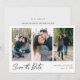 This simple, stylish modern three photo wedding save the date flat card template features your photos and a 'Save the Date' message in a unique script that we first wrote by hand and then adapted for use here. This element of the design is an image and can't be altered. But you might choose to change the font, punctuation or colour used for the other text on the front and/or back. For example, you might choose to give a certain colour to your names text. Or you might choose to delete something or change a text field entirely with a different message. The default colour for your names and date on the front are a slightly softened black. On the back we chose an atypical order for the information, putting the 'please save the date' text after the 'for the wedding of' text, which lends a path less travelled charm to it. You can easily alter this order or change anything else to suit your needs. On back, we've picked a tone called White Smoke that's a very light grey, with mostly white in it. You can easily change this by either picking one of the basic colours in the editing tools or entering a colour number if you have a specific hue in mind that you found in your research, or by looking at the colour spectrum tool and choosing something by sight. The default text tone on back is a very dark grey that's mostly black, but you can edit this in favour of another text colour, and you can also change any of the font. Use the intuitive editing and design tools, your favourite photos and your inspiration to make this simply chic multi photo collage wedding save the date card uniquely yours!
