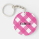 Modern hot pink check round acrylic key chain. Great for your car keys or to decorate a school bag.