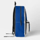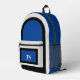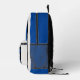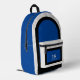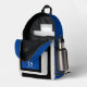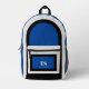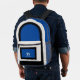 This sporty backpack design has classic design elements of a bold contrasting colour block geometric rectangular and arched frames in bright blue and black over an off-white background. A text template is included with monogram initials and name to personalise as you like. This look is stylish and sporty, yet simple and modern with a retro vibe and popular gender neutral appeal.