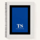 This colourful notebook design has classic design elements of a bold contrasting colour block geometric rectangular frame in vivid blue and black over an off-white background. A text template is included with monogram initials and name to personalise as you like. This look is stylish and sophisticated, yet simple and modern with a popular retro vibe and gender neutral appeal.