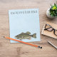 This design features a marine fishing blue fish a cute, nature angler illustration, fisherman angling masculine animal trout, beach Bass aquatic, trendy from the desk of, elegant modern stylish simple, minimalist chic script, basic personalised name, customised notepads, a classic template stylish perfect