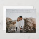 Budget Save the Date -- Modern smooth pen handwritten white script text. Completely versatile do-it-yourself style layout. The script text is flat image that cannot be edited, but it can be moved, resized, or rotated to align perfectly with your photo in advanced Customise mode. All other text elements can be fully edited. Works best for light mid-tone photo.  Other styles and sizes available in store.