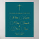 Enhance your event with our elegant sacred-themed foil print poster, featuring a delicate cross design and stunning gold foil calligraphy on a simple teal background. This poster is fully customisable, allowing you to add three unique names in sleek, minimalist typography—ideal for any religious occasion. Perfect as a welcome display for your guests, it’s sure to leave a lasting impression and add a touch of grace to your celebration. Blending faith with modern design, this foil print poster is the perfect choice for any Christian event, from baptisms to weddings, making every moment truly memorable.