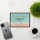 Simple, modern summer seaside beach wedding invitation. Modern seafoam and sand with a hint of blue art drawing