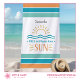 Celebrate summer vacations or a girl’s beach get-away with this fun beach towel that features a simple illustration of the sun and ocean waves, bold tropical coloured stripes, and two customisable text placeholders. Add a name plus additional text go create a fun keepsake that will bring back happy vacation memories each time you reach for this towel.