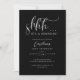 Minimalistic surprise birthday party invitation card featuring script text that says "shhh... it's a surprise!" at the top. Background is black.