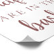 My thoughts on this product was excellent. Well printed in a gloss finishing and just the size l ordered. It arrived in good condition and am overall satisfied with the product. The printing turned out great. I was quite surprised with the finishing touch to the poster. The semi gloss was just right and a perfect size to display at the wedding.