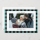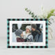 Simple Teal Black Plaid Border 3 Photo Christmas Holiday Card