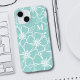 Simple Teal Blue Floral Initial Monogram iPhone 15 Case. A fun but elegant phone case with girly teal and white flower outlines. A playful flower pattern frames a chic serif font simple initial monogram. The fun part is you can change out ALL of the colours!! You can not only change the background colours and font, but you can change the lines for the flowers as well.