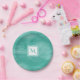 Simple Teal Green Subtle Marble Modern Monogram Paper Plate