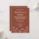 Unique simple bridal shower invitation featuring romantic and elegant white flowers and butterflies on a terracotta background