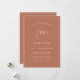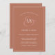 Simple Terracotta Monogram Wedding Invitation. Stylishly impress your wedding guests with this trendy burnt orange wedding invitation featuring a beautiful white script, with the bride and groom's initials on a terracotta background. This Invitation has a stunning dark orange design, with modern and minimal vibes, perfect for your simple, trendy, minimalist wedding.