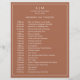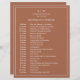 Simple terracotta Wedding Timeline featuring a modern yet elegant design with your two letter monogram at the top and your details surrounded by a thin border. All text is in white over a burnt orange / rust background and may be changed to any colours you wish by clicking the "customise" button. A chic and stylish design that is great for a minimalist couple.
