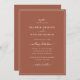 Simple Terracotta Wedding Invitation. Make your wedding invitation as memorable as your special day with this chic and stylish design. Featuring a simple minimalist look with a classy traditional touch, this modern text-only invitation features a hand-lettered calligraphy script with a classic terracotta / burnt orange border frame. Find coordinating products in the Simple Elegant Terracotta Border Wedding Suite.