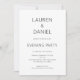 Simple Text Only QR Code Black and White Wedding Evening party A simple minimalist typography design to invite your evening guests which you can easily personalise with your details. Add a QR code on the back for your guests to scan to RSVP and see more details. Change the text and background colours if you wish to match your own wedding colour theme via the Edit further option.