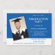 Simple Text Photo Blue White Graduation Invitation
