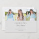 This minimalist graduation announcement features three photos, simple typography, and a neutral gray color palette. On the front, the three photos are displayed along the top of the grad card. Underneath the photos, "Graduate" is written in modern all caps typography, with the grad's name written in calligraphy below. At the bottom, add the graduate's school and graduation year. On the back, there is a template for graduation party details. The typography is written in charcoal gray against a light gray background on both the front and the back.