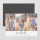 Simple three photo collage design wedding save the dates. Share three of your favourite engagement photos with this photo collage wedding save the date card.