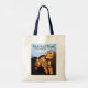 Simple tote with navy blue handle featuring the cover of Issue #4 of Heart of Flesh Literary Journal --- the painting "Naomi, Ruth, and Orpah" by Veronica McDonald. Printed identically on both sides. Heart of Flesh Literary Journal is a Christian journal that publishes poetry, stories, and art.