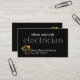 An all black cover features a translucent "electrician" signage near the centre of the card. At the top lies your prestigious name with a gold bulb home circuit logo you can use at the base alongside the business name and contact details.