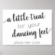 Modern flourish horizontal "a little treat for your dancing feet" shower, party, or reception favor table signage featuring a fun, casual hand-lettered script. The classic design includes a handlettered quote typography overlay. The lovely font with a customizable background color makes it easy to fit any theme. For other colors or matching products, please visit the JustFharryn Zazzle store. All rights reserved. #zazzlemade