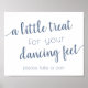Modern flourish horizontal "a little treat for your dancing feet" shower, party, or reception favor table signage featuring a fun, casual hand-lettered script. The classic design includes a handlettered quote typography overlay. The lovely font with a customizable background color makes it easy to fit any theme. For other colors or matching products, please visit the JustFharryn Zazzle store. All rights reserved. #zazzlemade
