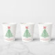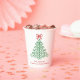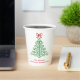Modern Christmas paper cups featuring a simple and cute doodle of a Christmas tree with a bow along with your choice of text.