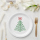 Modern Christmas paper plates featuring a simple and cute doodle of a Christmas tree with a bow.