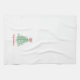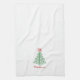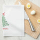 Modern Christmas kitchen towel featuring a simple and cute doodle of a Christmas tree with a bow along with the editable greeting "Merry Christmas".
