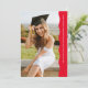 Simple but stylish, this graduation announcement and invitation features a trendy modern wavy edge along with simple typography to announce your graduate. With one large photo on the front and another on the back, this grad design a great way to show off two senior photos. The wavy edge is a classic bright red with white text. The back is a coordinating red with white type. The back also features room for graduation party invitation text or other information like future plans or a thank you. This original unique red graduation announcement and graduation party invitation by Lea Delaveris Design is also available as a digital graduation announcement file download.
