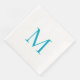 Simple Turquoise monogram White Dinner Napkin. Wedding.