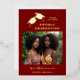 Simple Two Brothers Graduates Double Graduation in Dark Red Real Gold Metallic Foil Invitation Photo Card Design.