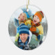Simple Two Photos Name Year Ornament. Celebrate the season with a personalised ceramic (or other style) holiday ornament featuring your favourite two photos printed in full-bleed on both sides. Add a name and year in your choice of font style and colour to create a meaningful keepsake that captures special memories. Perfect for decorating your Christmas tree, gifting to family and friends or commemorating milestones, this custom ornament becomes a treasured holiday tradition year after year. ASSISTANCE: For help with design modification or transferring the design to another product, contact the designer BEFORE ORDERING via the Zazzle Chat MESSAGE tab or email makeitaboutyoustore@gmail.com.