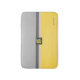 Stylish and elegant two tone sunny yellow and light grey colour design with semi-transparent black and white belt and a monogram.