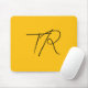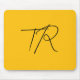 Simple black hand writing typographic custom initials minimalist design on mustard orange background.