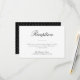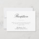 A wedding reception information card with a simple black and white theme and calligraphy text.