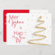 Vibrant colored letters, trees, holly and cancy canes in a cheerful message suitable for a non-religious holiday greeting. I especially liked it on the black background which made the design pop.