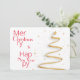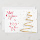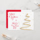 typography text designed in red colour and Christmas tree artwork is stylish gold surrounded with golden stars and dots.
