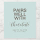Simple and chic "Pairs well with chocolate" Easter personalised wine label featuring modern typography in pastel blue and brown. Minimalist, elegant and stylish. Customise with short greeting and name. Perfect for Easter gift or Easter party favour.