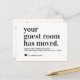 Your Guest Room Has Moved Moving Announcement featuring a modern script and font typography and a heart.