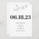 A branch of ivory white orchids, hand drawn in black graphite pencil, decorates this elegant, simple, classy and modern wedding save the date template. It features modern, elegant typography. Luxurious but simple, classic but chic, modern but timeless.