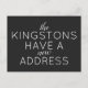 We Have a New Address Card Moving Announcement featuring a modern script and font typography.
