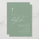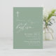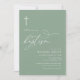 simple script sage green custom photo baptism invitation card. The text and colours can be edited.