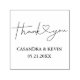 Modern and simple thank you stamp for your wedding featuring a hand lettered typography script that says "thank you" with a heart between the words. Customise this product by adding your names and event date.