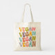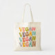This simple "Vegan" tote bag features a colourful word in retro colours.